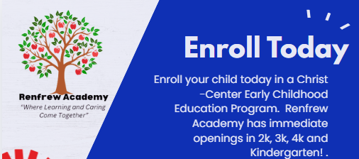 Thank you for your interest in Renfrew Academy! We are so glad you are here with us today. We pray you enjoy your visit and see the vision we have to raise up young children not only in strong academics but also on a strong foundation that is Jesus Christ!